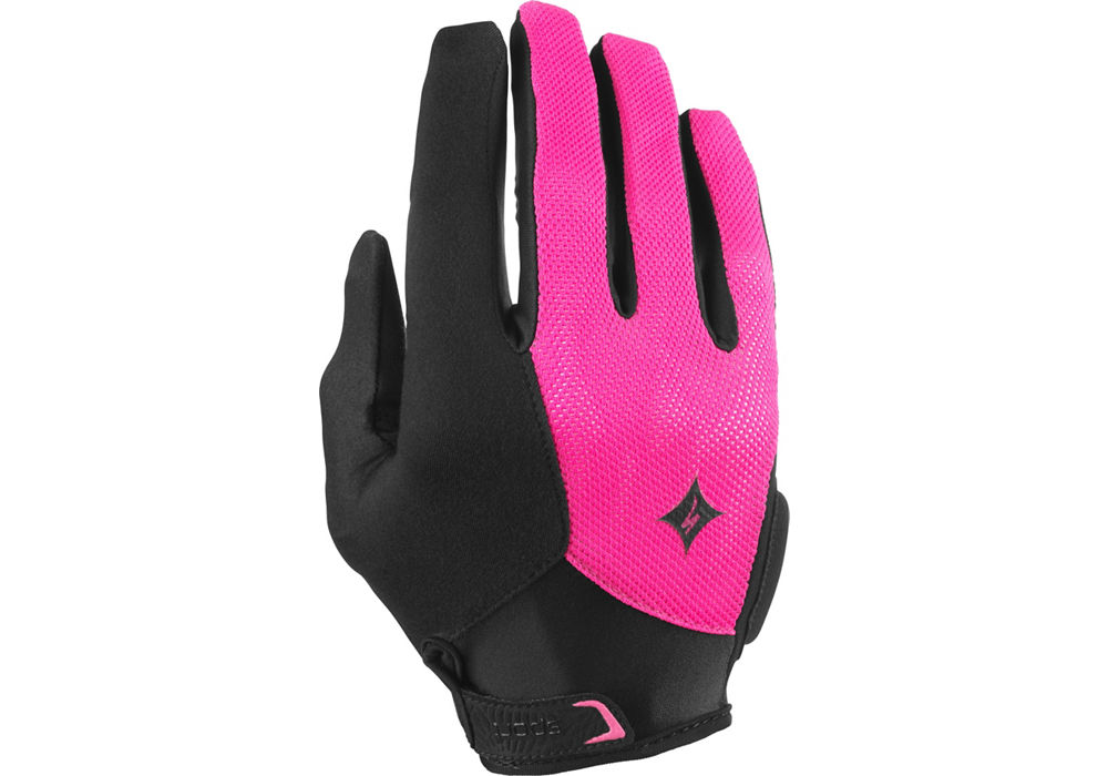 Add a load of comfort to your rides with Specialized's Women's BG Sport Long Finger Gloves. They boast Specialized's Body Geometry padding that soaks up road and trail vibrations, while the stretchy mesh uppers breathe to keep you comfortable and dry. The Velcro closures offer a custom fit and the synthetic-leather palms add comfort and a great grip. You also get absorbent thumbs for face wiping.